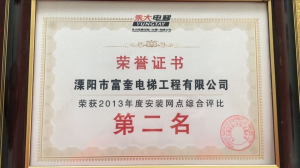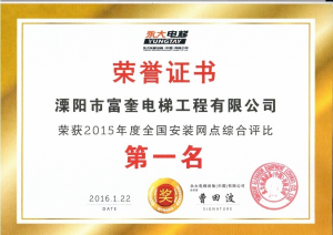 溧陽市富奎電梯工程有限公司 溧陽市富奎電梯工程有限公司是于二OO八年一月九日在原前身溧陽市電梯工程公司基礎(chǔ)上成立的,是專業(yè)從事電梯銷售安裝維修、保養(yǎng)的企業(yè)。是國家質(zhì)監(jiān)總局頒發(fā)的特種設(shè)備安裝、改造、維修A級安裝許可證單位。公司組織機構(gòu)實行總經(jīng)理負責制,公司下設(shè)管理部、銷售部、安裝維修部、質(zhì)安部、財務(wù)部,公司另外設(shè)十二個分公司:四川分公司、江蘇分公司、上海分公司、浙江分公司、湖南分公司、遼寧分公司、山東分...